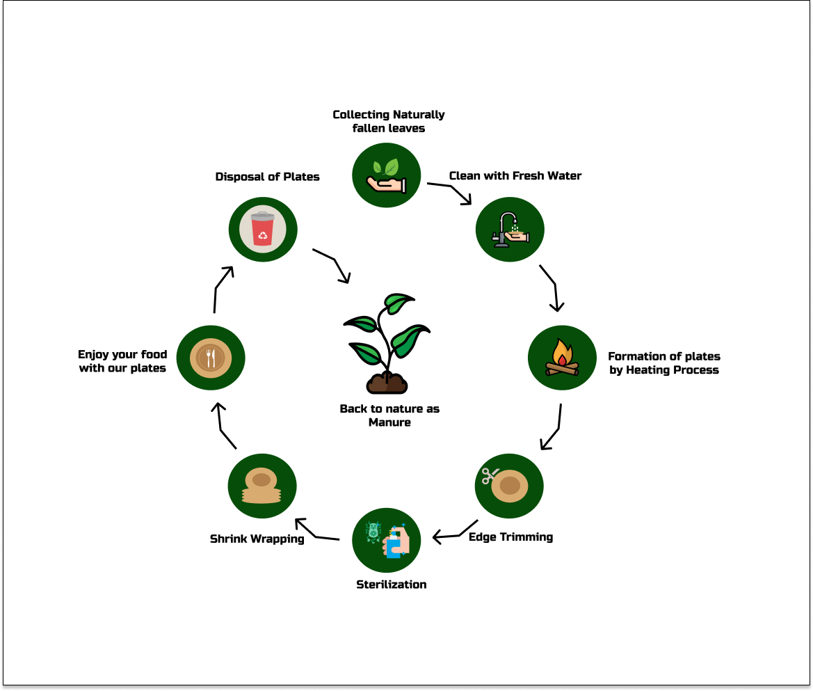 Palm leaf plates made from fallen leaves. Its nature is easy composting does not need commercial composting, hence it providing nutrients into the soil.